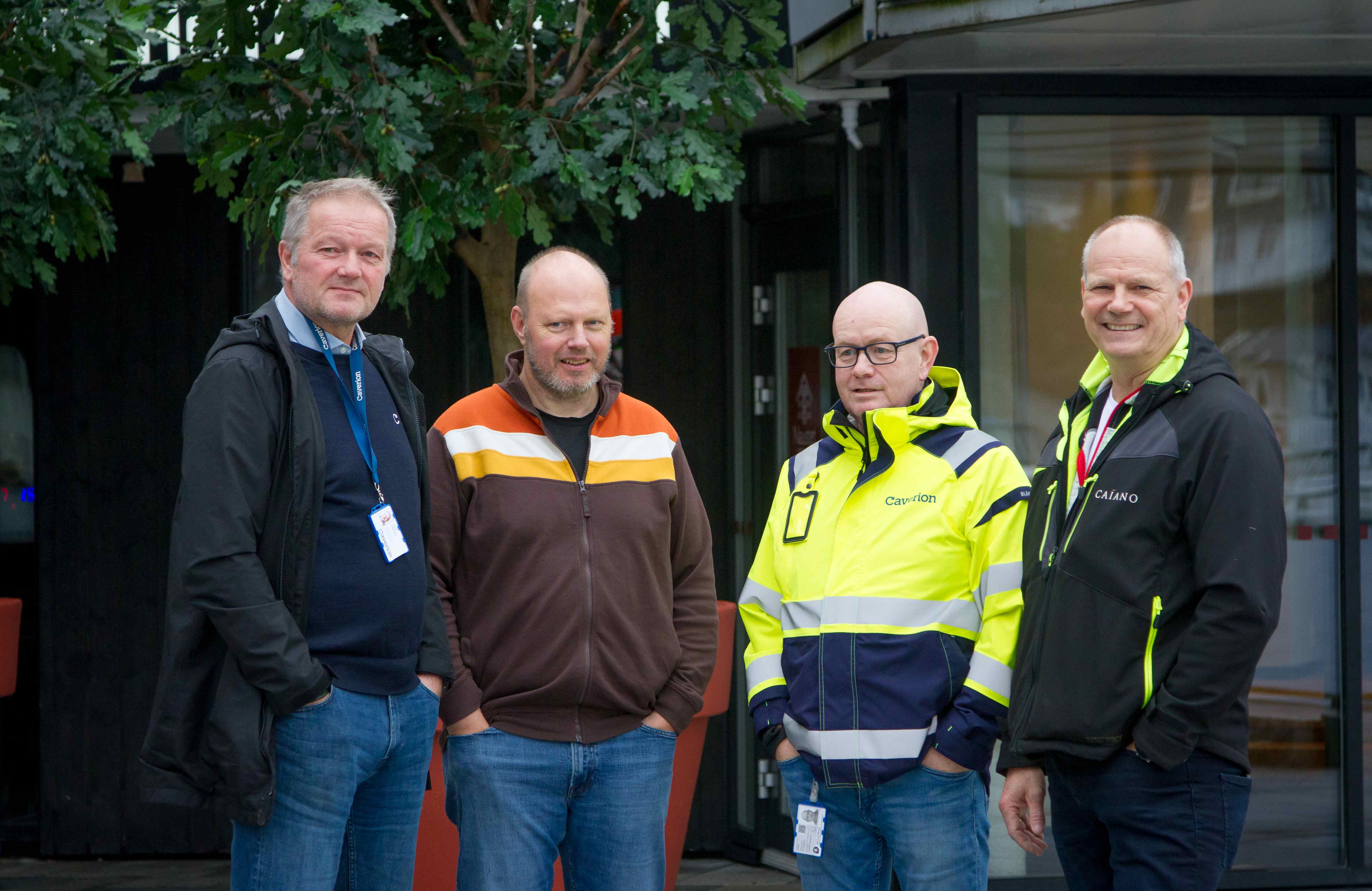 Ståle Oldeide (avdelingssjef Caverion Haugesund), Tor Arne Naley (teknisk sjef Caiano Eiendom) Roar Tangen (prosjektleder Caverion Haugesund), Thore R. Aarvik (teknisk sjef Caiano Hotelldrift), har samarbeidet tett om klimaløsningen i Maritim Hall.